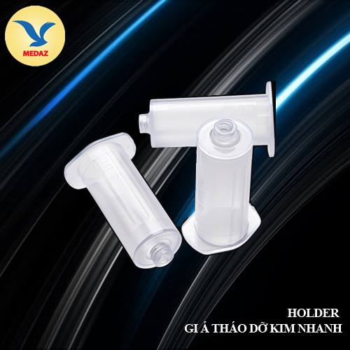 Holder – Giá tháo dỡ kim nhanh: Là dụng cụ sạch, dùng để kết nối với các loại kim chân không (VD: kim bướm chân không, kim hai đầu) và kết nối với các loại ống nghiệm chân không trong quá trình lấy máu tĩnh mạch
